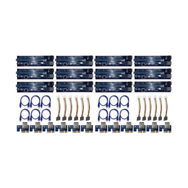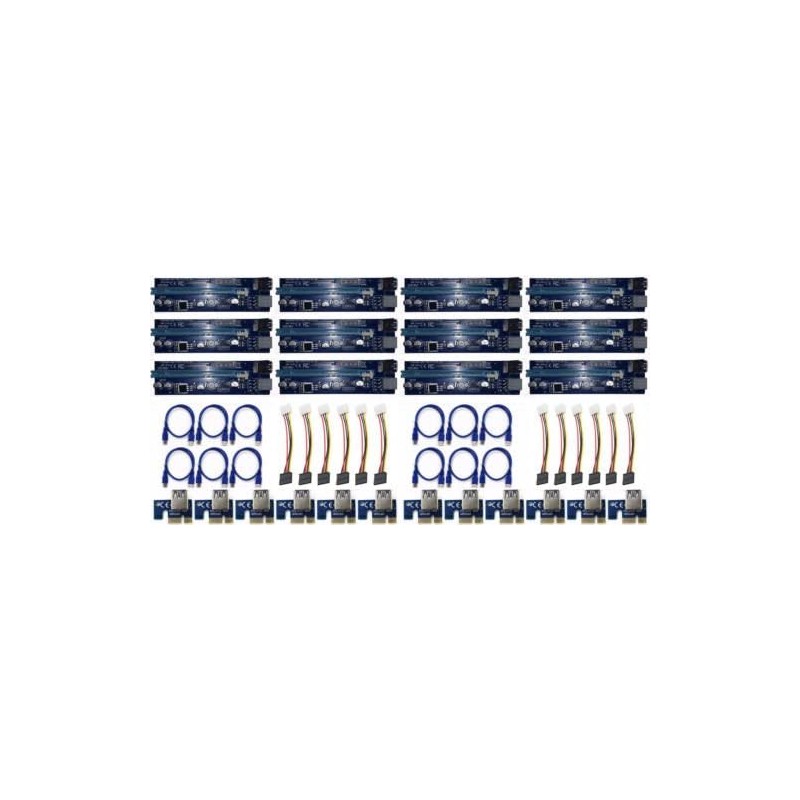 PCI-E 1X to 16X GPU Mining Extender Riser Multi-Interface Adapter with LED (12 Pack)