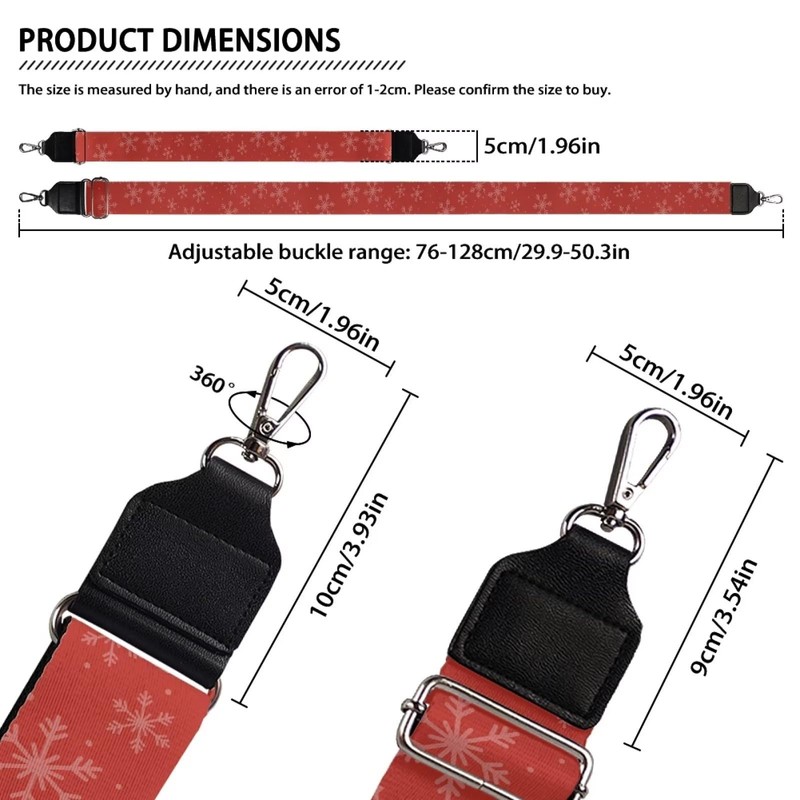 PCSJRKG Snowflake Wide Guitar Style Adjustable Strap for Purse & Tote Bag Christmas Theme with Silver Hardware