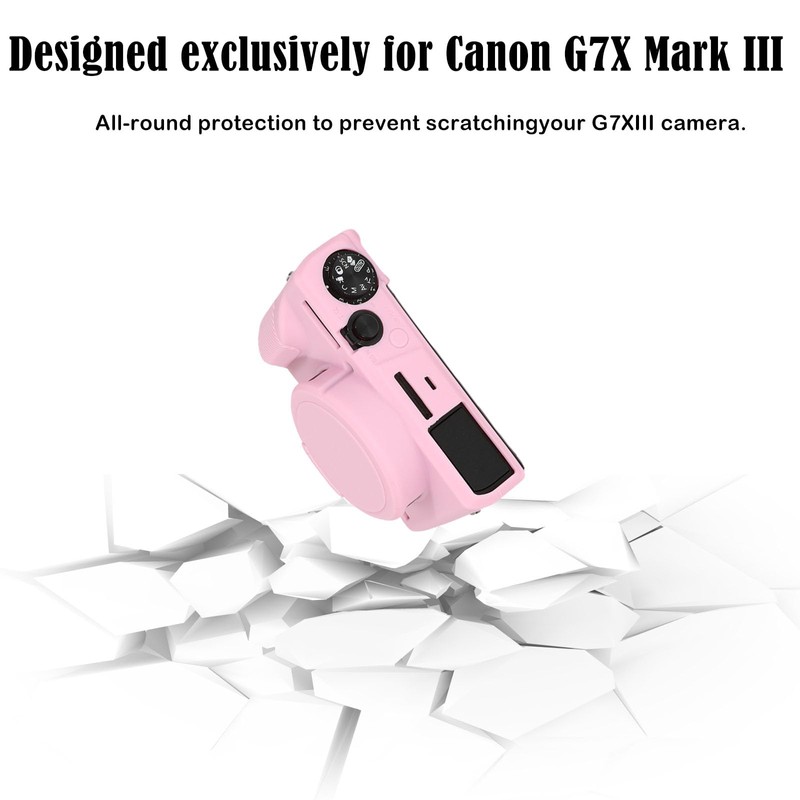 • ⭐EASY TO INSTALL - This product is suitable for G7X Mark III camera. Unique design, it only takes a few seconds to complete the installation and disassembly, saving your time and effort.(PLEASE NOTE: Only silicone case in the package, the Camera is excluding.)