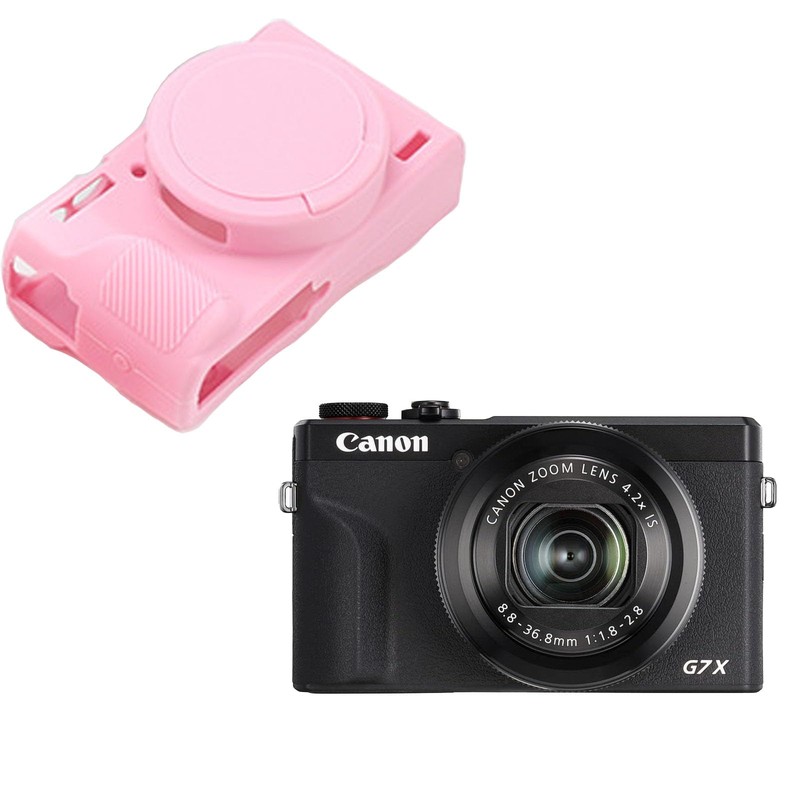 PCTC G7XIII Silicone Case, Soft Silicone Case for Canon Powershot G7X Mark III Digital Camera, G7X Mark III Accessories with Detachable Lens Cover (Pink)