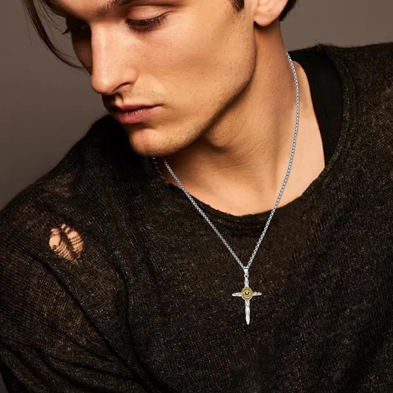 PCTJYFU Cross Necklace for Men Sterling Silver Cross Pendant with Evil Eye Necklace Christian Necklace Jewelry Religious for Men Women