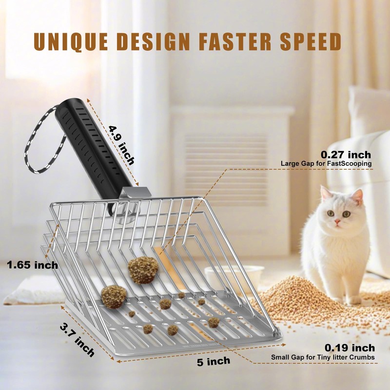 - High-Quality Material: Made from premium stainless steel, durable and corrosion-resistant, perfect for a cat litter scoop, kitty litter scoop, and metal kitty litter scoop