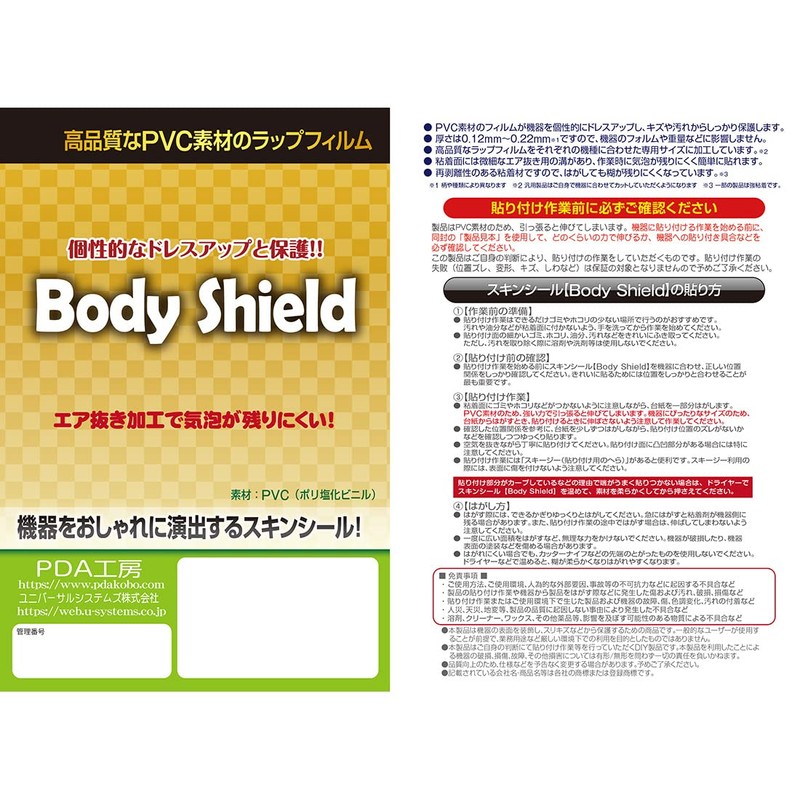 Body Shield is a product made with 3M high quality film that has been specially processed into a shape for each device, so you can dress it up to your desired design and color and protect it from scratches and dirt.