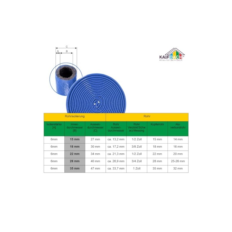 PE Pipe Insulation Hose 10 m Roll x Diameter 18 mm / 6 mm Insulation Thickness Blue Protective Hose Heating Pipe Insulation with Protective Skin Pipe Insulation Hose Pipe Insulation Hot Water Pipe