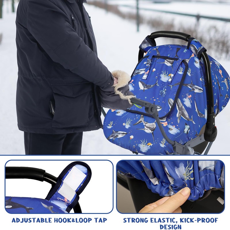 Pea Pod Winter Baby Car Seat Cover for Newborn, Warm Infant Car Seat Canopy Covers with 2 Layers Windows of Breathable Mesh/Fabric, Lightweight Polyester/Thick Minky Dot Backing (Ocean)