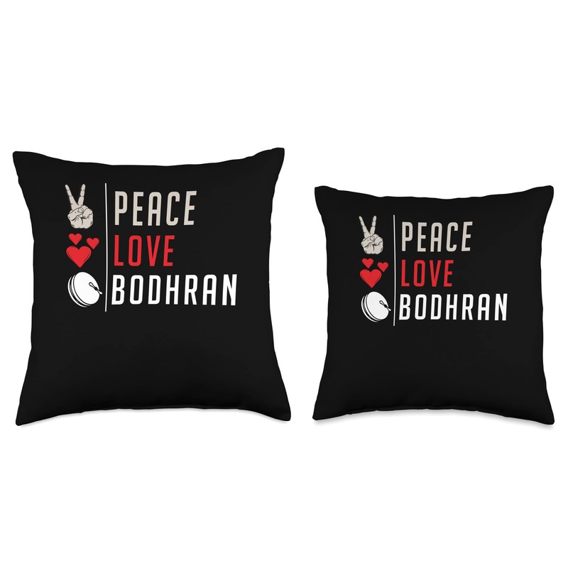 Peace Love Bodhran Drum Irish Instrument Bodhran Player Throw Pillow