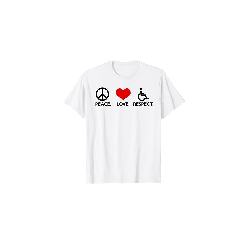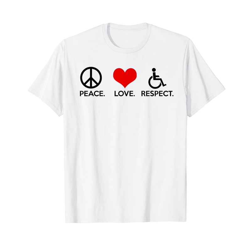 - Fun disability design to promote Disability Awareness with quote - Peace. Love. Respect. Add this design to your collection of fun clothes and apparel. Available for men, women, boys and girls.