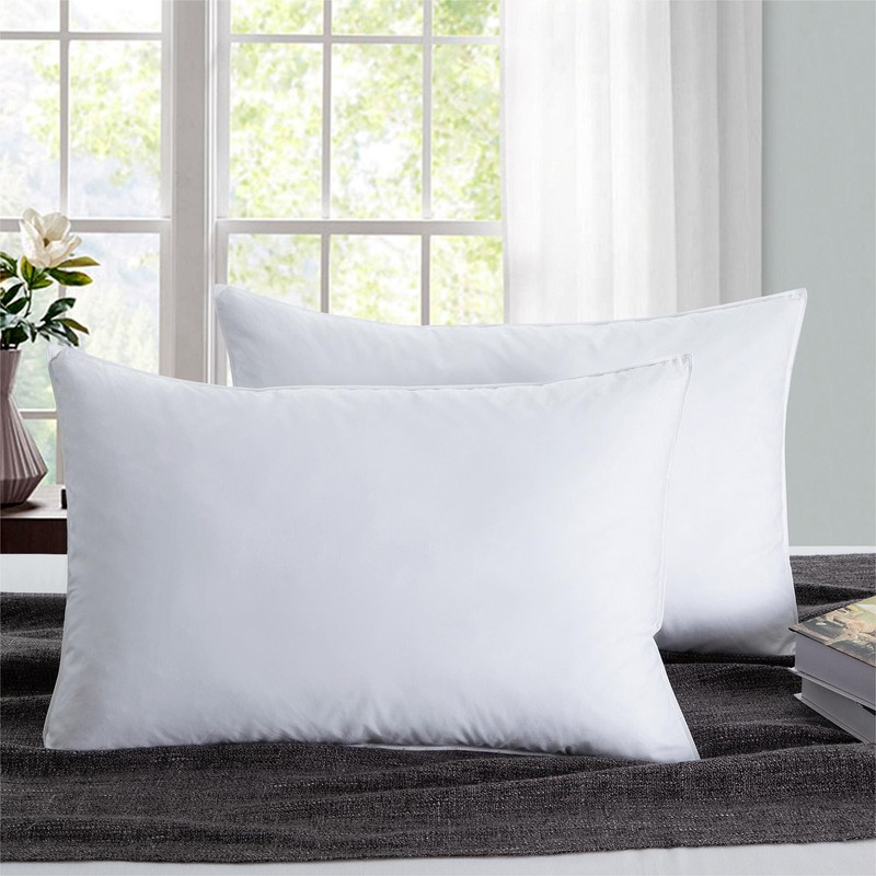 Set of 2 Goose Feather Bed Pillows Medium-Firm for Back and Side Sleepers -
