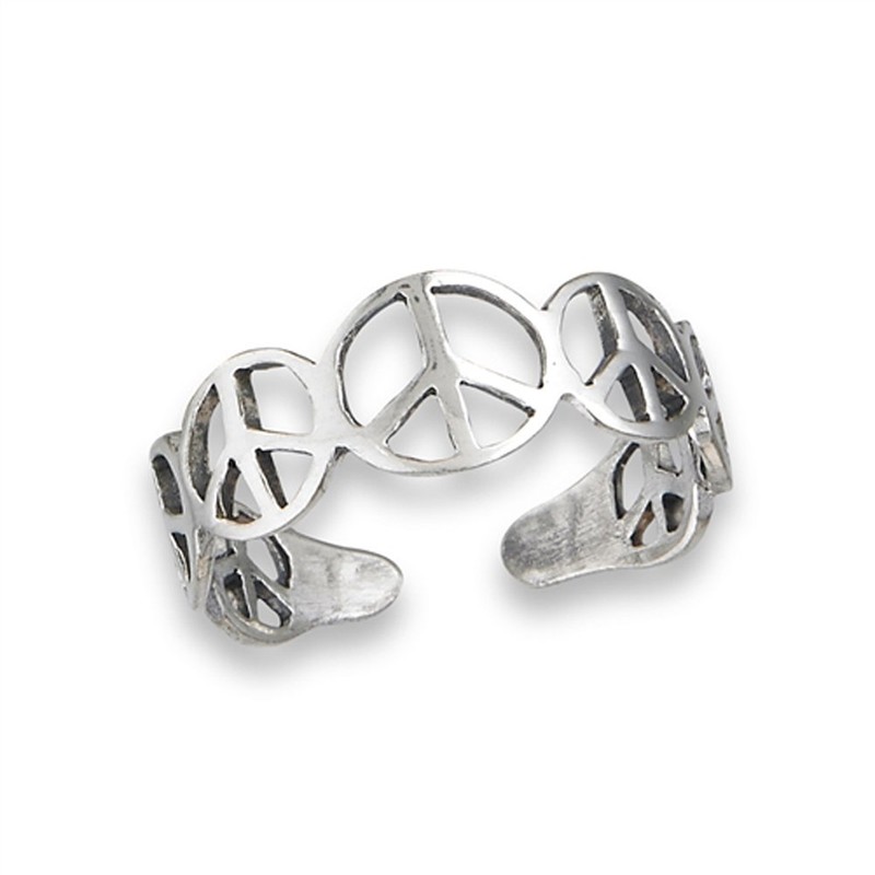 Peace Sign Repeating .925 Sterling Silver Symbol Toe Ring Band
