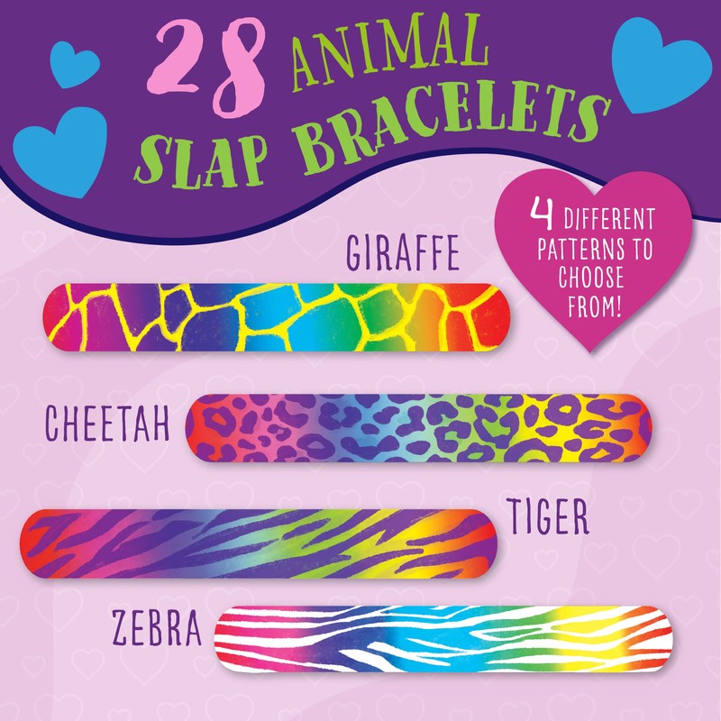 Peaceable Kingdom Valentines Cards for Kids Classroom, Set of 28 Valentines Day Gifts - Animal Print Slap Bracelets