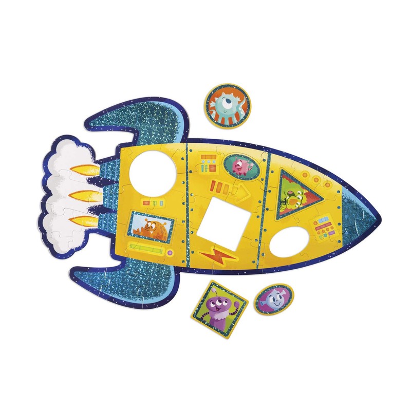 - UNIQUE DESIGN: This rocket ship floor puzzle is made of thick, sturdy pieces with shiny foil accents. Puzzle pieces are uniquely shaped for curious minds and include basic shapes like a circle, square, triangle and more.