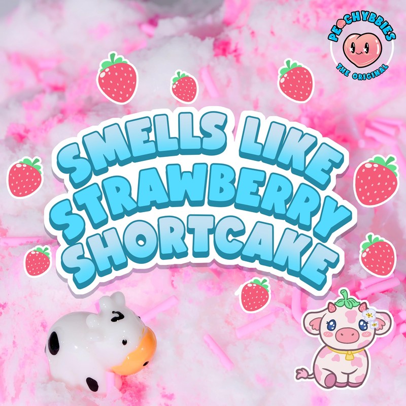 - SMELLS LIKE STRAWBERRY SHORTCAKE: Here at Peachybbies, we don't think strawberry shortcake gets enough love! As soon as you open your jar of Strawberry Cow Slime, your senses will be delighted with the irresistible scent of yummy strawberry shortcake! It smells sooooo good, we can't wait for you to experience it for yourself.
