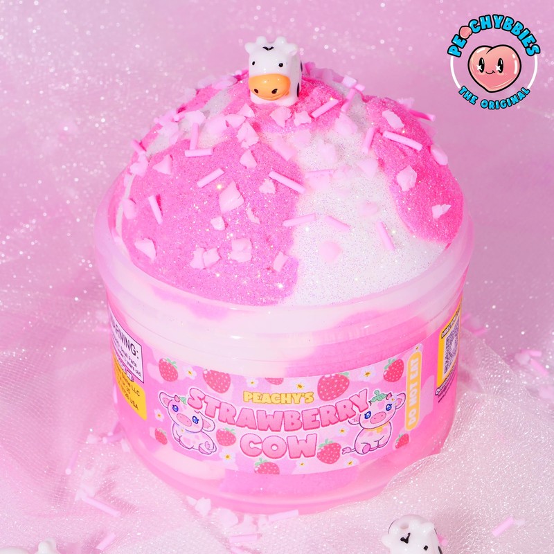 - OFFICIAL PEACHYBBIES SLIME FOR KIDS: Get ready for a one-of-a-kind sensory explosion with super soft and smooth, dense and drizzly Strawberry Cow Slime from the famous Peachybbies Slime Shop! Peachybbies Strawberry Cow Slime is a limited edition. Grab yours while you can!
