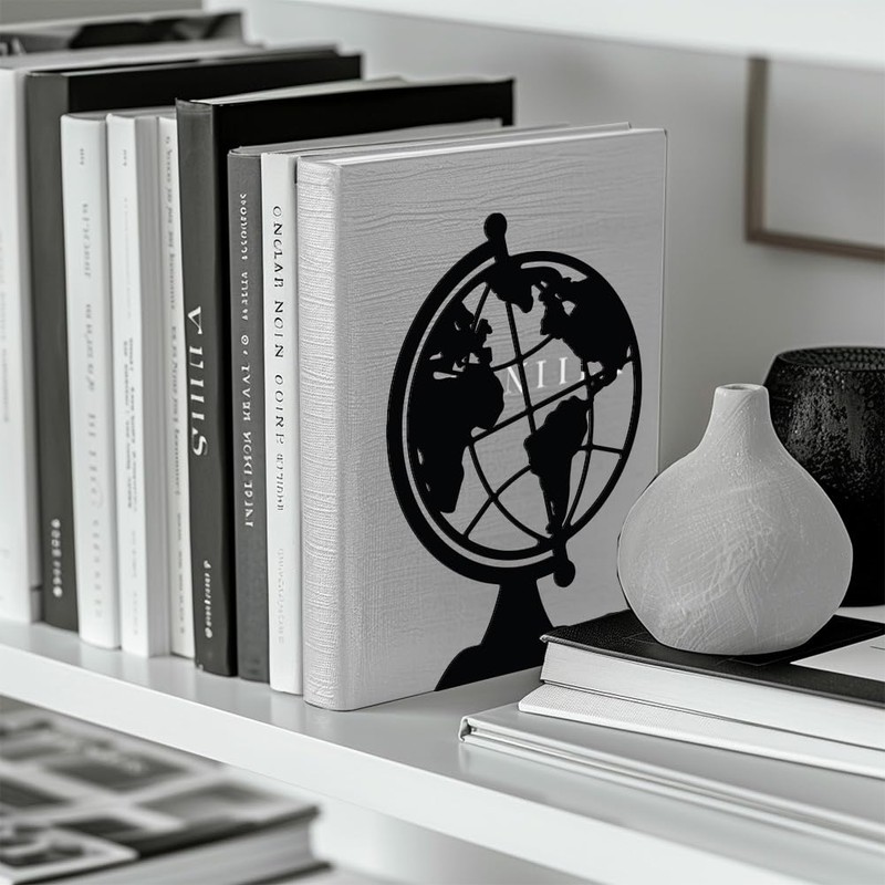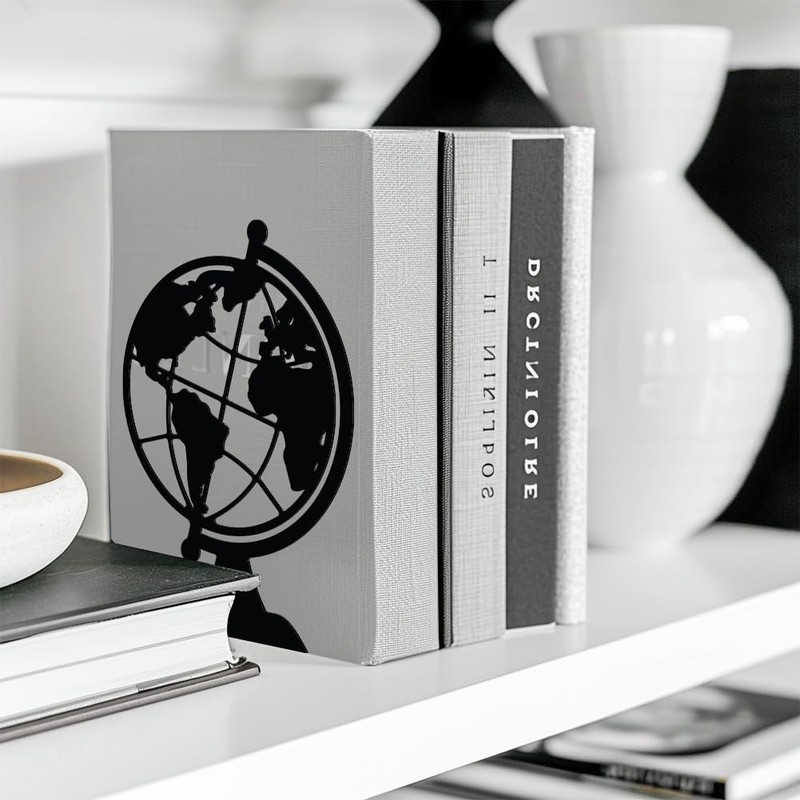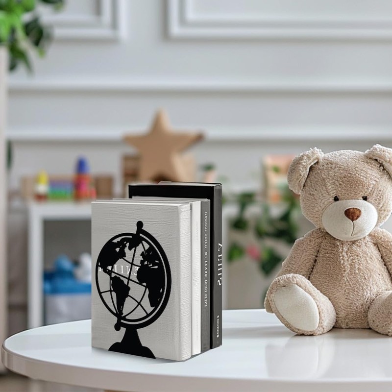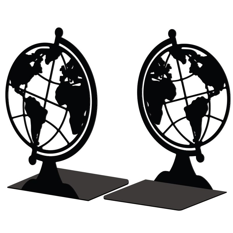 Peacoblue Metal Bookend Stopper Holder Stand for Shelves Decorative, 13.5x11x18.8cm Modern Creative Heavy Duty Study Book End for Desk Shelf, 1 Pair (Globe)