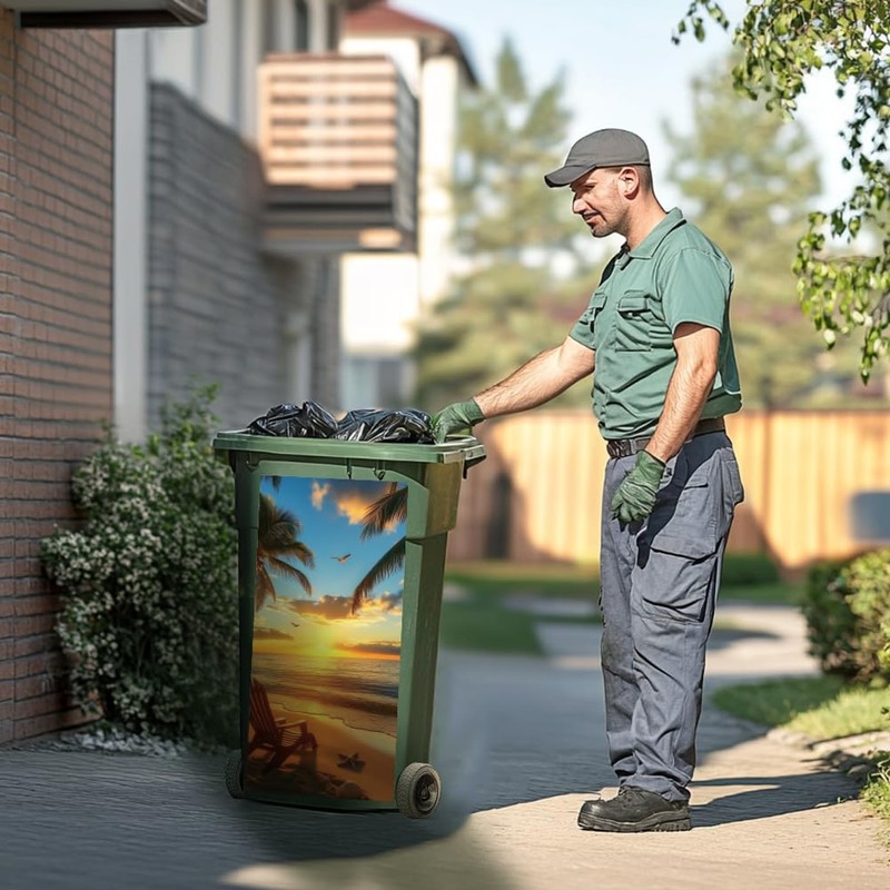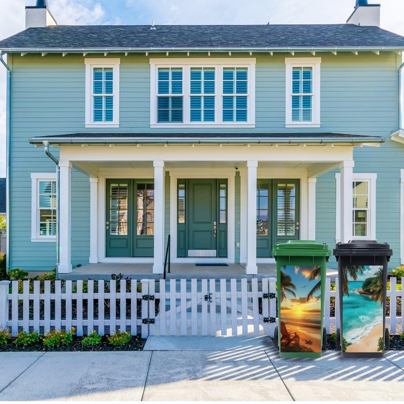 - 🏖Waterproof: Our outdoor wheelie bin stickers(beach, seaside, sunset) is made of weatherproof long lasting material and the corners don't peel after raining