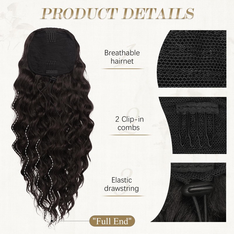 - [Warm Tips]- Wrap around drawstring pony tail hair extension is meticulously crafted with care. The curls are well-defined. It is unnecessary to worry about tangles because they can be easily untangled by spraying water or mousse and then separating them with your fingers (It is not recommended to use a comb but your fingers).