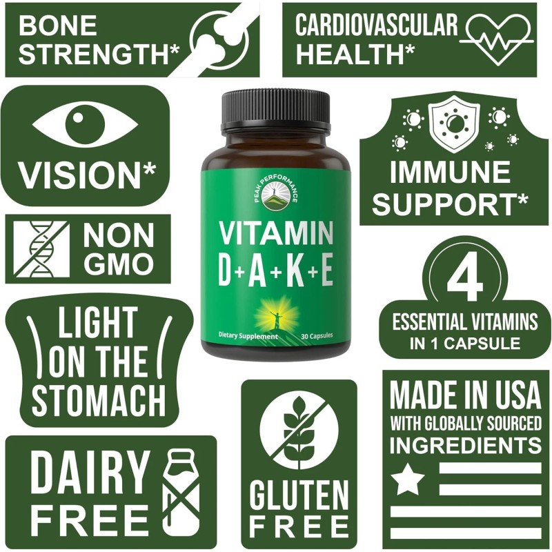 Peak Performance DAKE Vitamin Supplement. Essential Vitamins D 5,000 iu + A + K + E All In...