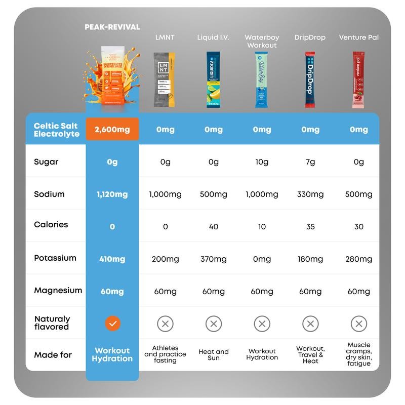 Peak Revival Celtic Salt Mineral Electrolyte Hydration Variety Pack (12 Packs) Sodium, Magnesium & Potassium. Dietary Supplement Good for Energy & Stamina, Rapid Hydration and Performance