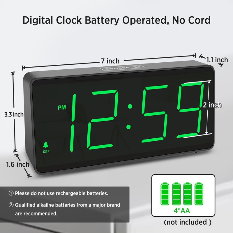 - 𝐁𝐚𝐭𝐭𝐞𝐫𝐲 𝐏𝐨𝐰𝐞𝐫𝐞𝐝 𝐃𝐢𝐠𝐢𝐭𝐚𝐥 𝐂𝐥𝐨𝐜𝐤 𝐀𝐥𝐚𝐫𝐦 𝐂𝐥𝐨𝐜𝐤 - The Peakeep digital clock runs on 4 AA alkaline batteries (not included). The flexibility of cordless gives you more freedom because you are not constrained by power outlets. Therefore, it can help you get up on schedule when power goes out and get rid of messy cords to free up room.