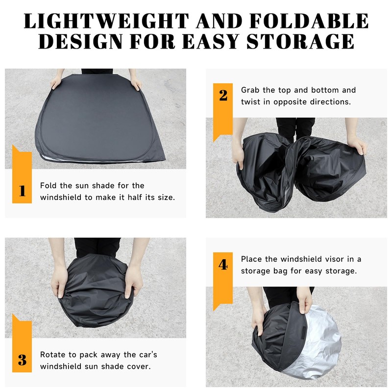 - The car windshield sunshade incorporates a "memory steel ring," enabling flexible twisting and folding. When you need to store it, simply fold it, twist it into an "8" shape using the steel ring, and tuck it into the accompanying storage bag, which convenient storage and storage.