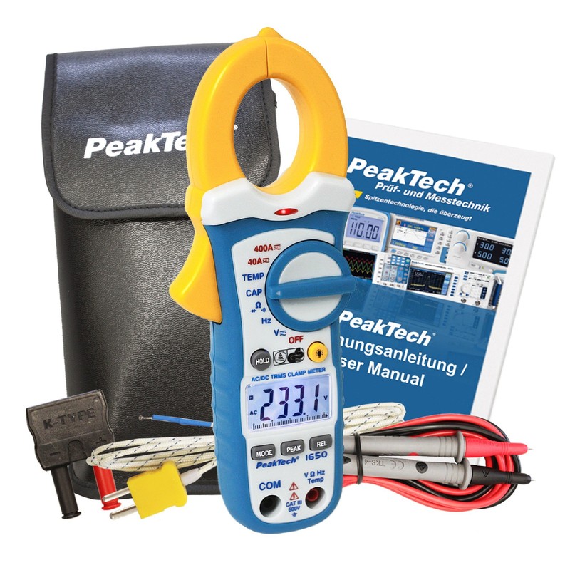 PeakTech Digital Current Meter Meter with Multimeter, P 1650, 400A AC/DC, True RMS, 4000 Counts, Contactless Voltmeter, Ammeter, Continuity Tester, Data Hold