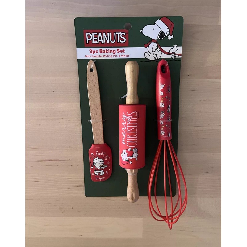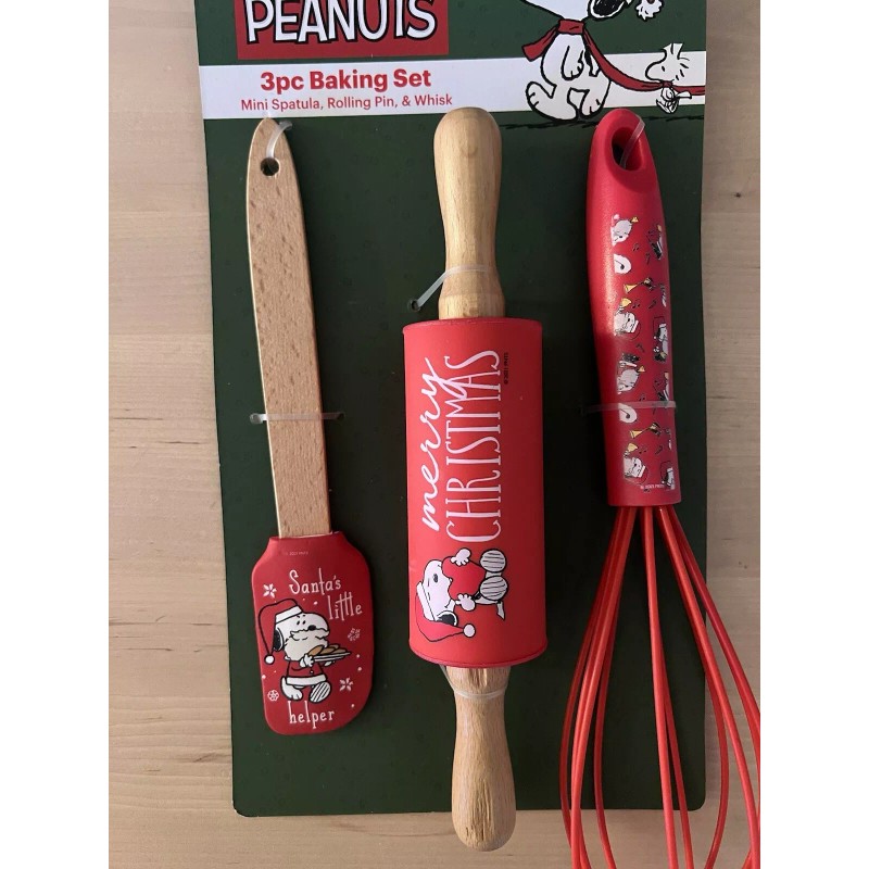Peanuts Snoopy Merry Christmas 3 Pc Baking Set. Rolling Pin, Whisk, Spatula