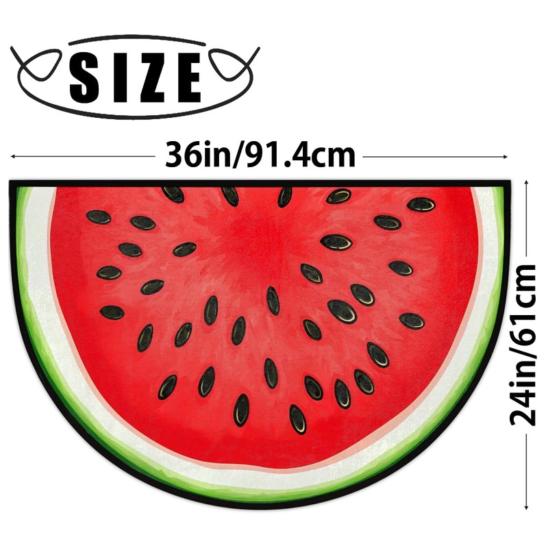 Peaom Fruit Watermelon Half Round Door Mat Indoor Entrance Low Pile Non Slip Absorbent Semi Circle Welcome Mats Doormats 36x24 in Floor Mats for Home Kitchen