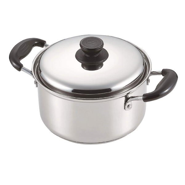 Pearl Metal HB-5104 Double Handed Pot, 7.1 inches (18 cm), 3 Layer Bottom, Gratia, Silver