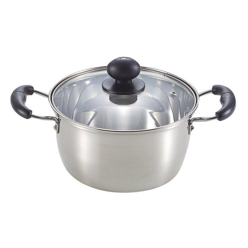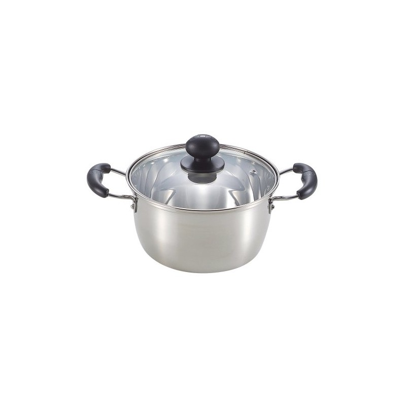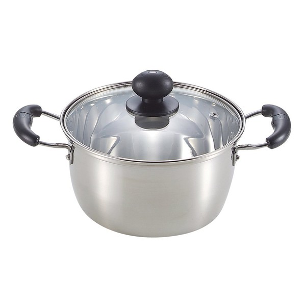 Pearl Metal Mirage H-3172 Double Handed Pot, 7.1 inches (18 cm), Glass Pot with Lid, Induction Compatible, Stainless Steel