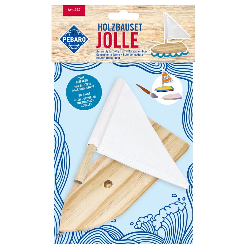 Pebaro 474 Wooden Construction Set Dinghy Boat for Assembling and Painting, Craft with Wood, Gift Idea for Children, Beige