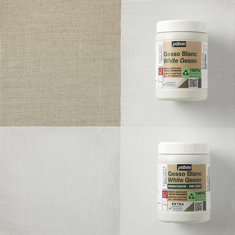 - The Gesso Pébéo Studio Green White Monocoat (also called medium, auxiliary or primer), is an acrylic coating allowing you to prepare your supports for painting by reinforcing the adhesion of the paint. Extra covering and adhering in one layer, it applies to a clean, grease-free surface. The medium (white gesso single coat) can be applied in preparation for multiple painting media: canvas, cardboard, paper, wood, etc. Studio Green Range: Studio GREEN is the first