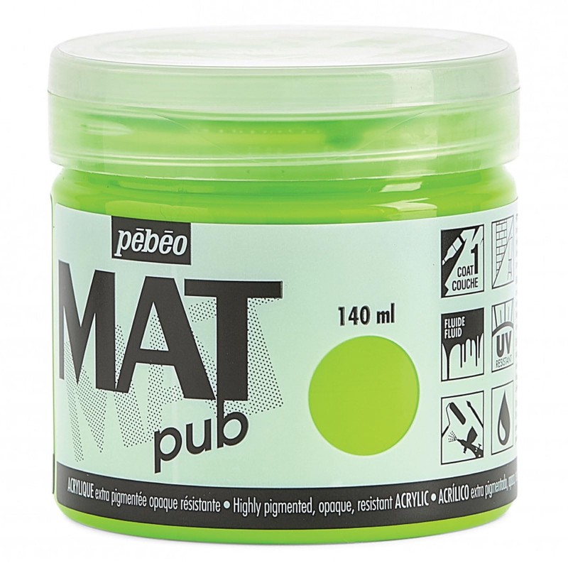 Pebeo Mat Pub, extrafein, 140 ml, fluoreszierende grüne Acrylfarbe