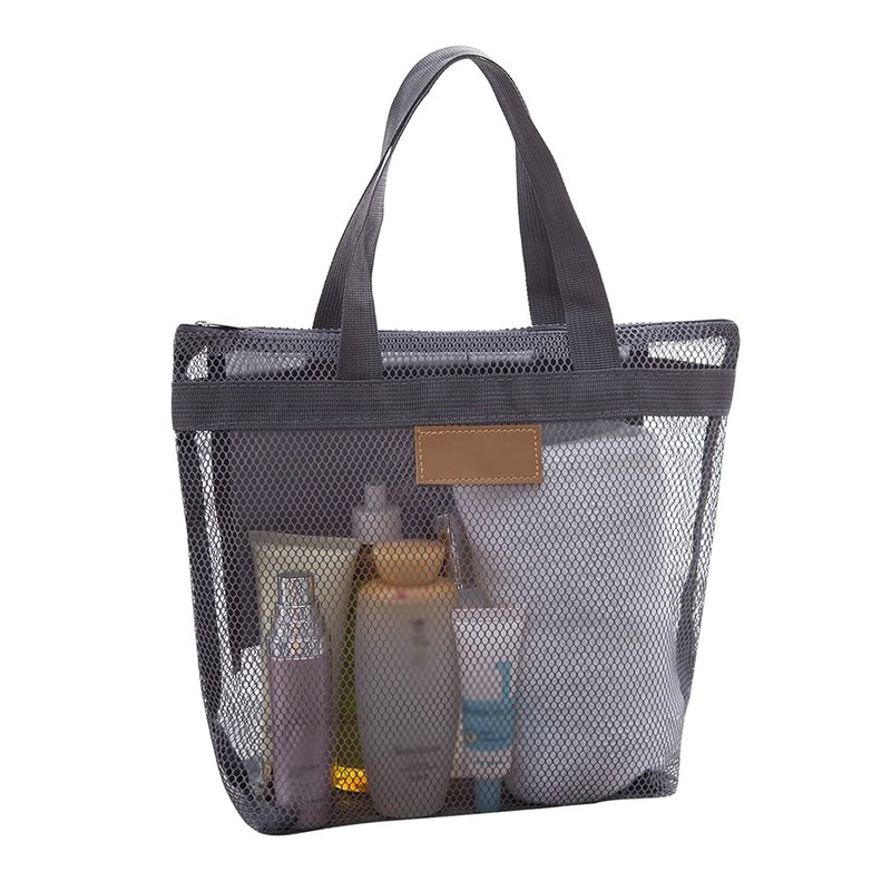 Pebipoo Mesh Shower Caddy Bag, Quick Dry Portable Tote Bag with Zipper and Inner Pocket, Lightweight Bath Organizer for College Dorm Bathroom, Swimming, Gym, Beach, Travel (Gray)