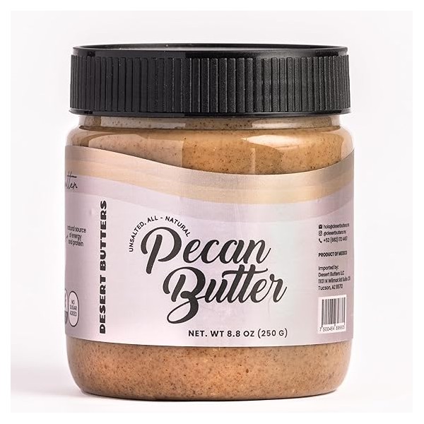 Nuestra crema de nuez pecana de Desert Butters es 100% natural, no contiene azucares, conservadores ni sal. Las nueces pecanas son ricas en grasas saludables, proteínas, fibra, vitaminas y minerales, por lo que su consumo puede aportar numerosos beneficios para la salud. La crema de nuez pecana puede ser utilizada en la elaboración de postres, smoothies, bowls, spreads, salsas, aderezos y como un snack saludable para acompañar frutas o verduras. Es importante destacar que al ser un producto 100% natural, sin conservantes ni aditivos químicos, su vida útil es limitada y se debe almacenar en un lugar fresco y seco y evitar la exposición directa al sol.