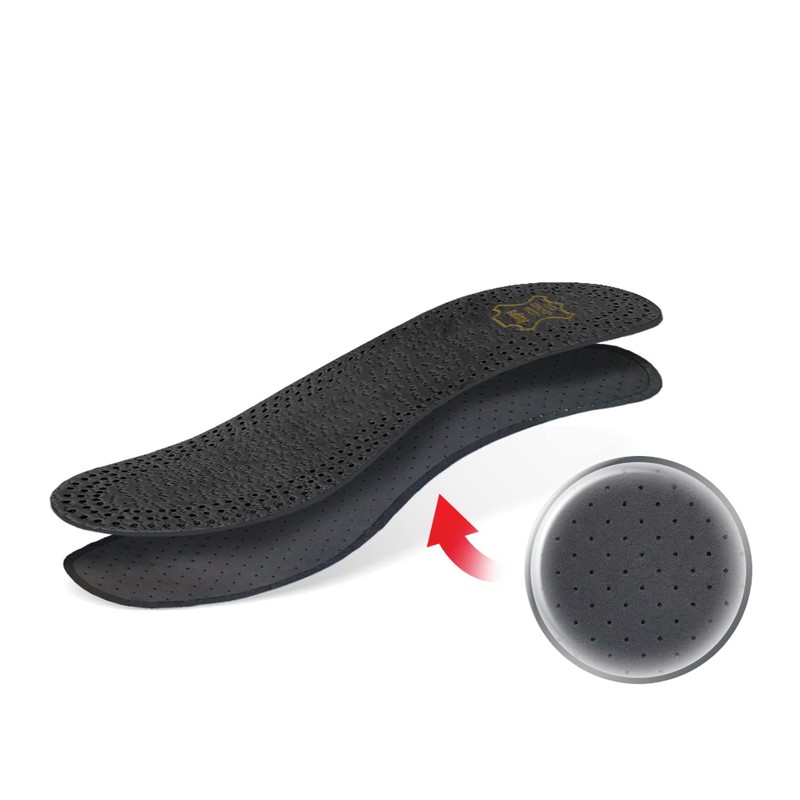 PECARI 100% Genuine Leather Black Shoe Insoles with Breathable Active Carbon Latex Foam, Keeps Odour Away (Women/UK 6/39 EUR)