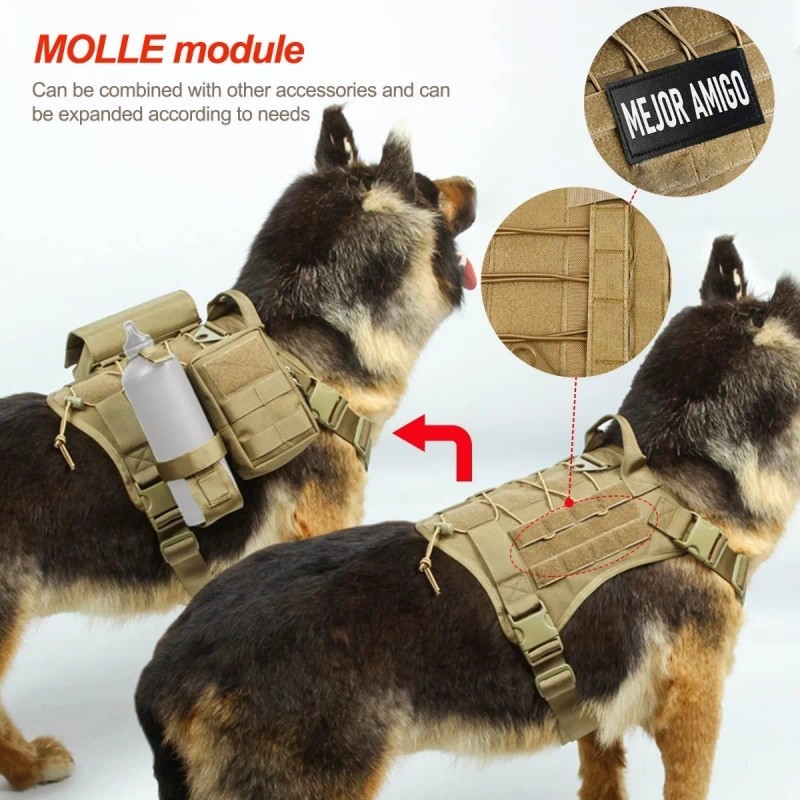 Material duradero para entrenamiento de perro: el chaleco táctico para perro está hecho de nailon 1000D de alta calidad que es duradero y no se daña. La hebilla de pesado también es de alta calidad, no se rompe ni se oxida. Es duradero y es mejor para el entrenamiento de sus mascotas, perros militares.