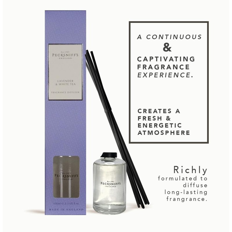 Pecksniffs Classic 100 ml/ 3.3 fl oz Reed Diffuser Set Lavender & White Tea