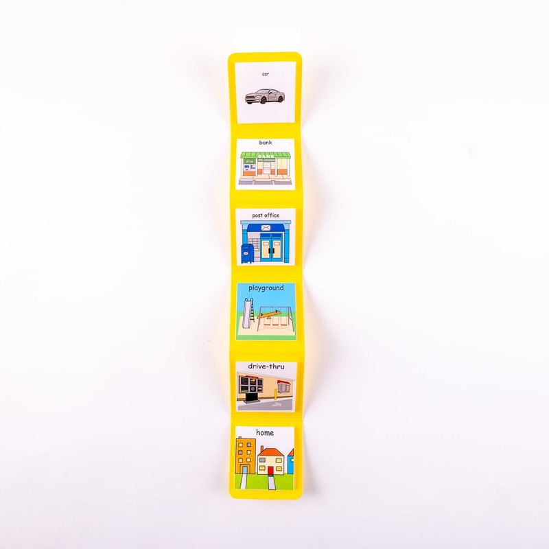PECS® Compact Community/Traveling Visual Schedule, 18" x 3" Unfolded, 3" x 3" Folded, for Transitions, School, Home, Work and Community. (Yellow)