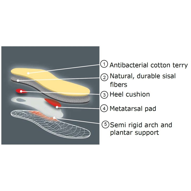 • Innovative Trevira bioactive fibre with silver quickly absorbs all moisture inside the shoe.