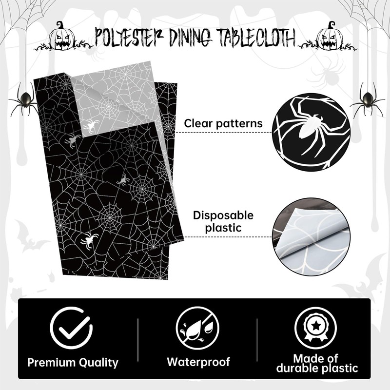 - Ideal for Halloween Celebrations - With spiderweb pattern, these tablecloths are specifically designed to enhance the ambiance of your Halloween festivities. They are the perfect match for a night of frights, adding a touch of eerie elegance to any Halloween celebration.
