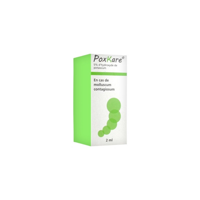 Poxkare Potassium Hydroxide Solution 5% 2ml is a solution to apply on cutaneous lesions provoked by the molluscum contagiosum.