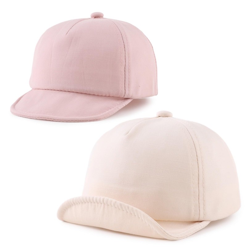 PEECABE Bendable Brim Toddler Baseball Hat Cute Pure Color Infant Baby Sun Cap 3-18 Months (3-18 Months, Pink+Beige)