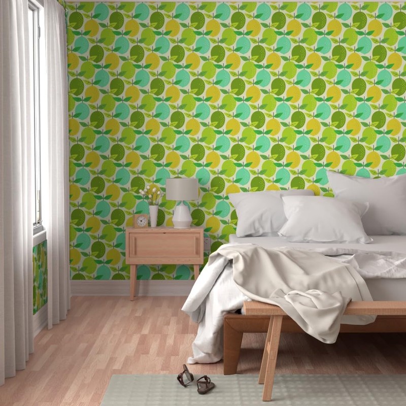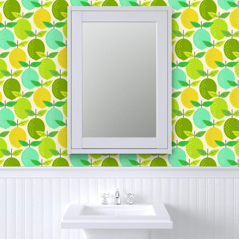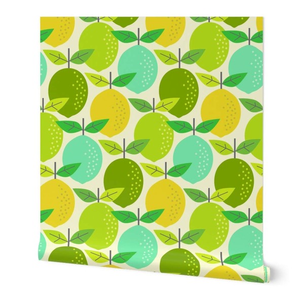 Peel & Stick Wallpaper 6ft x 2ft - Lemon Lime Vintage Picnic Food Kitchen Lemonade Yellow Green Custom Removable Wallpaper by Spoonflower