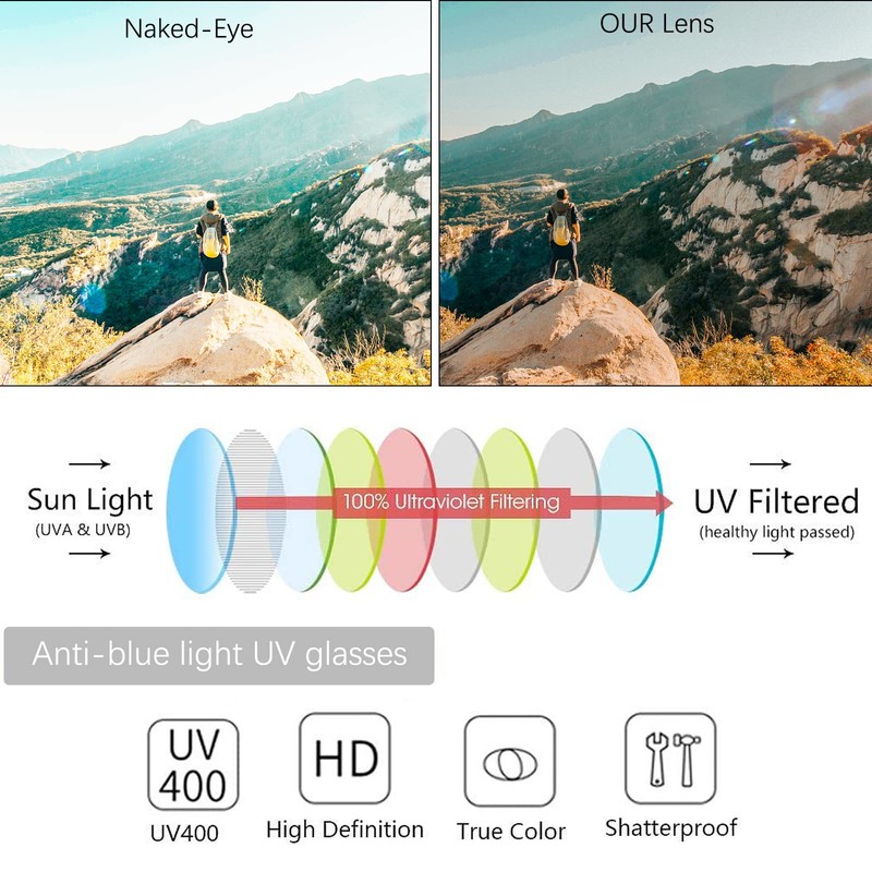 - 【Flexible Spring Hinge Design】The spring hinge design can fit snugly on any face without worrying about being too tight or too loose.High quality frame, scratch resistant lens, very durable, but still refined enough to stay stylish.The soft nose pad design allows you to freely adjust the position of the nose pad for more comfortable wearing