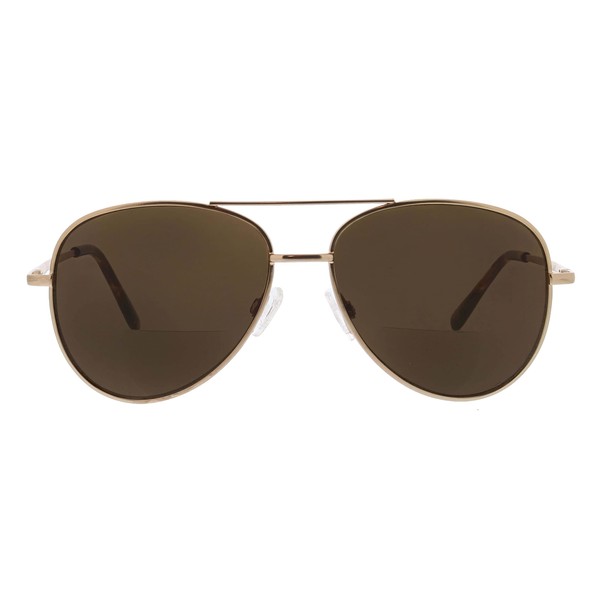Peepers by PeeperSpecs Womens Ultraviolet Bifocal Aviator Sunglasses, Gold, +1.50