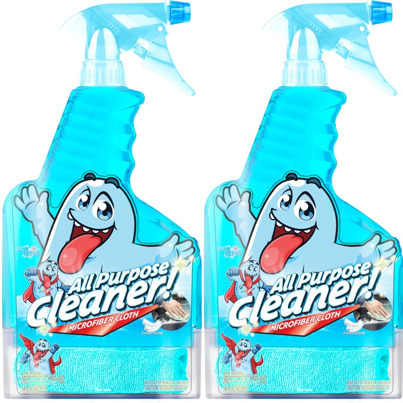 Gunk Getter - Spray Bottle With Microfiber Cap - All Purpose Cleaner 16oz - FRESH (2 Pack)