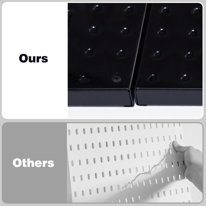 - Built for Durability: Invest in long-lasting storage with a rust-resistant, crack-proof, powder-coated pegboard. The folded edge design, maintaining a 5/8-inch thickness, protects your walls from scratches.
