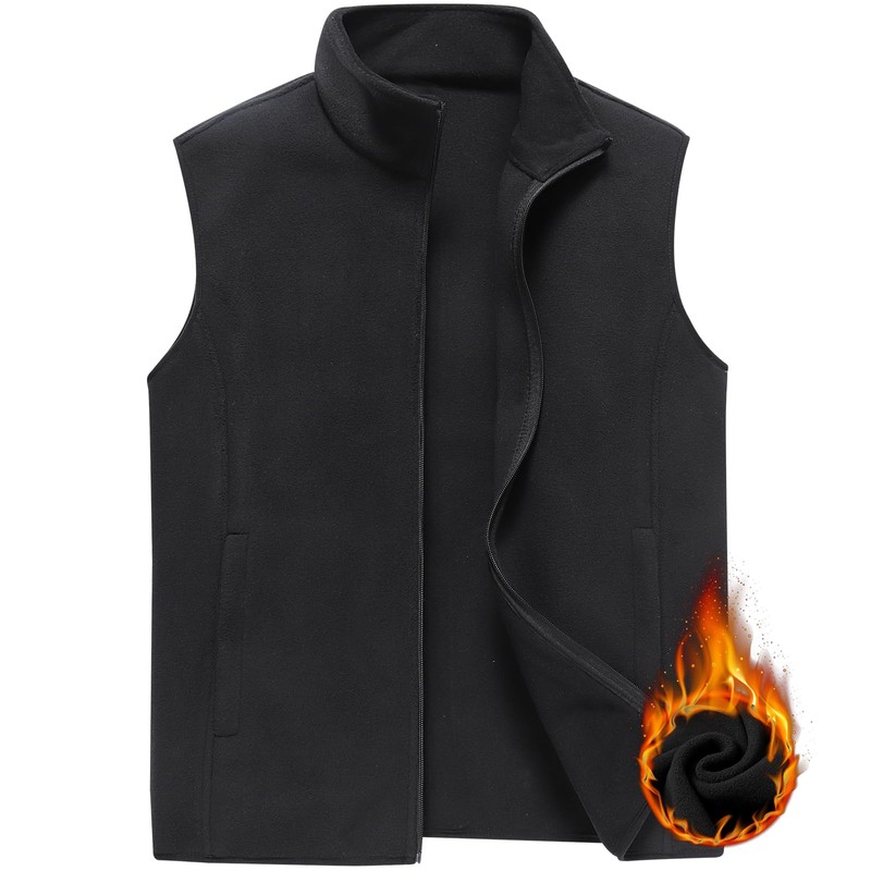 PEGENO Men's Fleece Vest, Full-Zip Lightweight Sleeveless Outdoor Jacket With Zip Pockets,01 Black,Medium