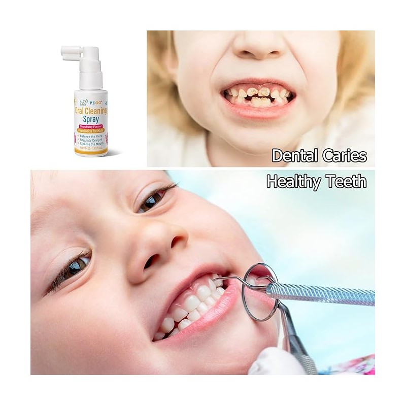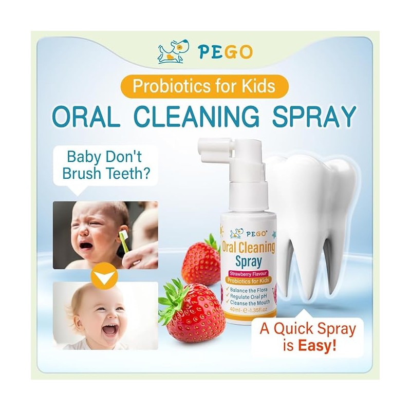 PEGO Kids Oral Spray, Toddler Toothpaste Helper for Cavity Prevention and Fresh Breath, Children Anticavity with Fluoride Free for Newborn to Preschoolers, Kid's Mouth Spray (40ml*1/Pcs)