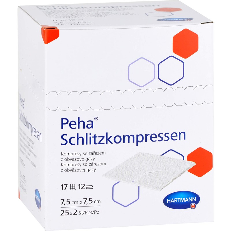PEHA Slotted Compresses 7.5 x 7.5 cm Sterile 25 x 2 Pieces